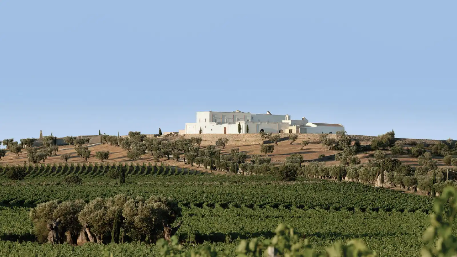 The estate is internationally known for its sculpted vineyard landscape and contemporary architectural design, making it one of the most distinctive vineyard wedding venues in Puglia.