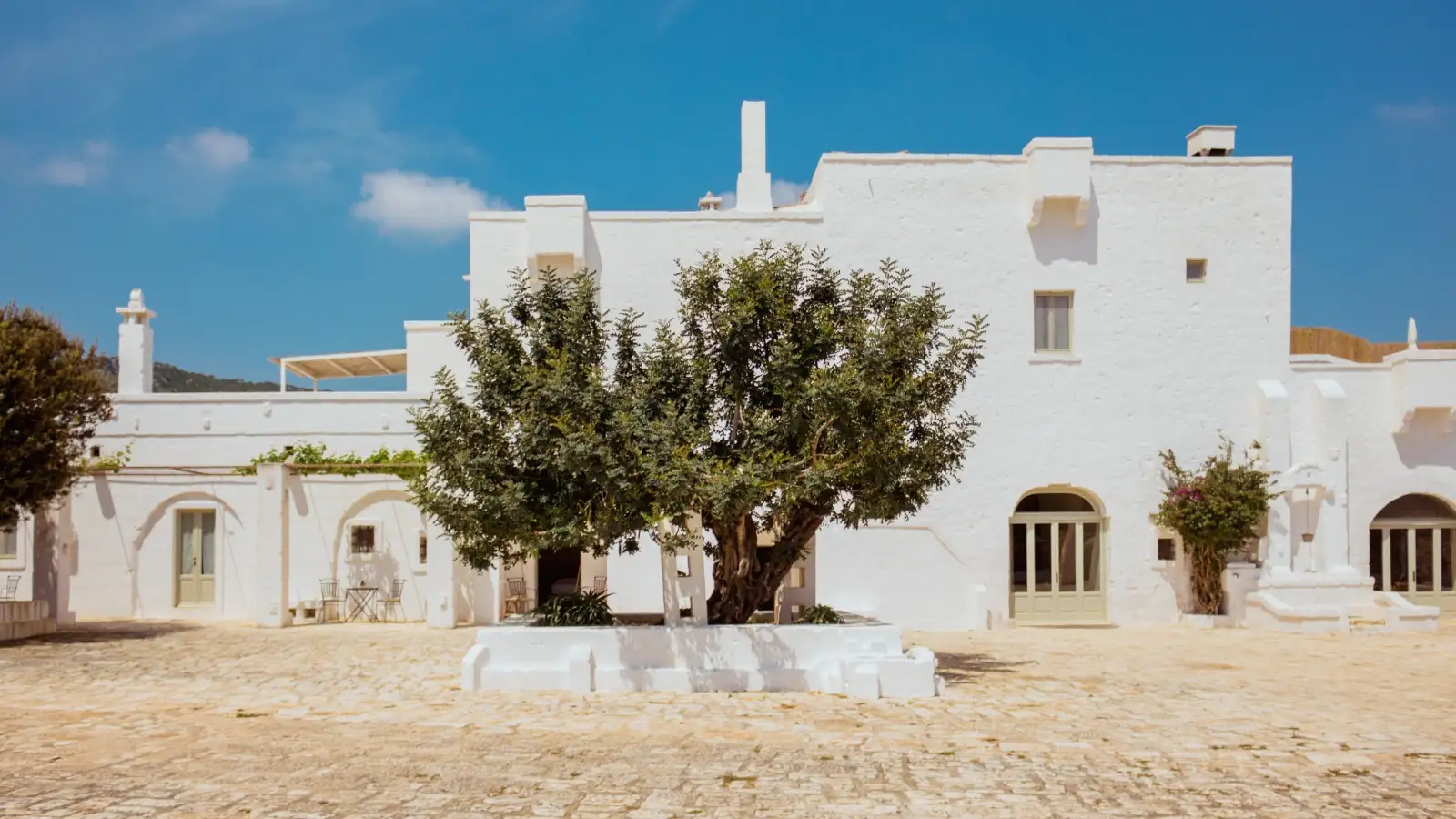Masseria Le Carrube is located near Ostuni in Puglia, surrounded by olive groves and peaceful countryside landscapes.
